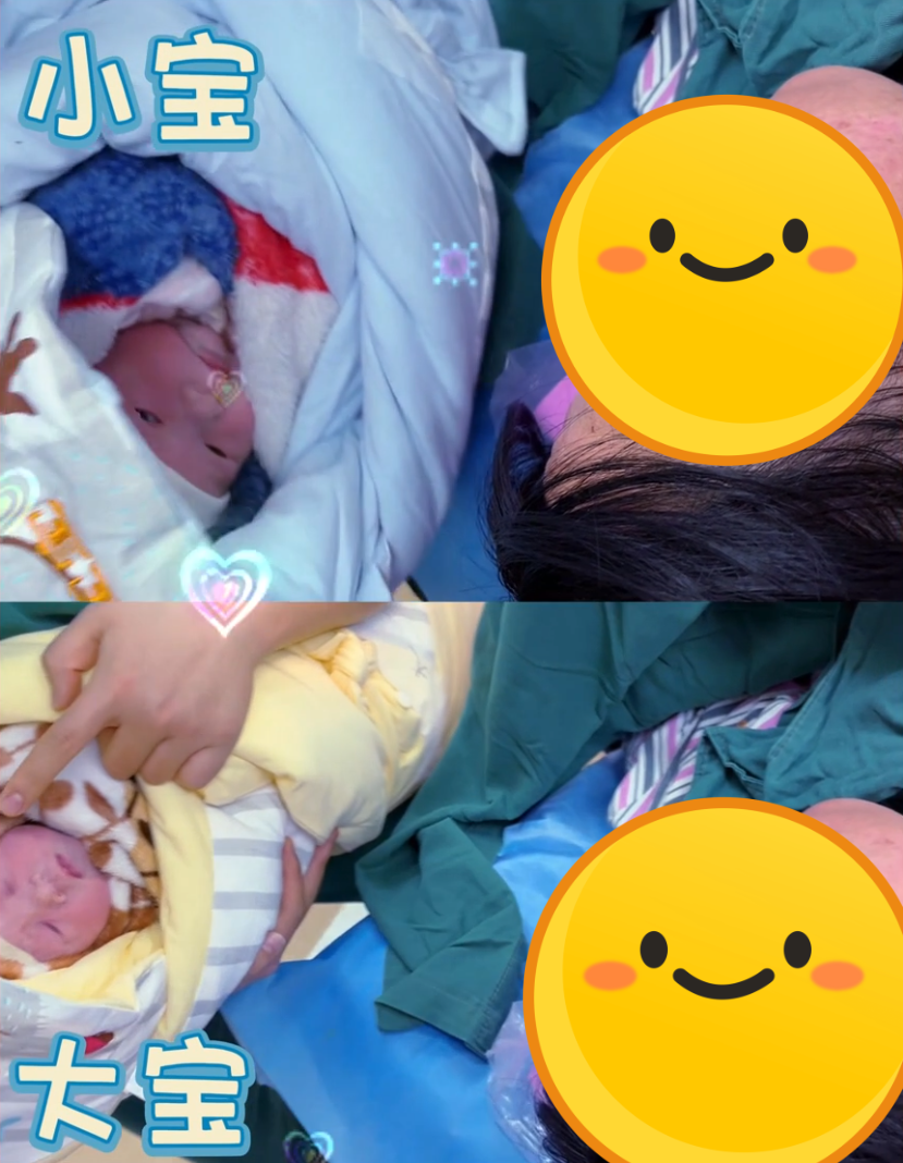 1月31日,37+5周的金女士同样是双胎临产入院,经过检查,金女士为双胎妊娠+脐带缠绕+瘢痕子宫+轻度贫血,这些为手术、麻醉、护理都增加了很大的难度。经过专家讨论后,当天上午9点2分开始准备手术,多个科室启动联合响应,经过40多分钟的多科室医护全力奋战,两声响亮的啼哭声打破了手术室紧张的氛围,金女士经剖宫产先后产下一对双胞胎女宝宝,姐姐3000g,妹妹2800g。